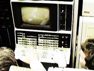 After many long nights producing punched tape and playing (ummm... debugging) the game, we had a reasonable implementation, with a pair of spaceships, missiles, mines, and a sun with gravity -- but without the fabled MIT razor-edged hyperspace button. We were of course closely supervised by our two lab assistants, Jack Sarvela and Keith Spitz. Bryan and I were excused from actually handing our project in, as the teaching assistant (Dave Cautley) not only had some familiarity with our game, but also had a strange aversion to having a refrigerator-sized PDP-12 placed on his desk, flatly refusing any and all offers to do so.
